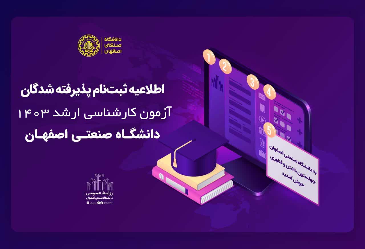 اطلاعیه پذيرفتهشدگان آزمون کارشناسی ارشد سال 1403 دانشگاه صنعتي اصفهان