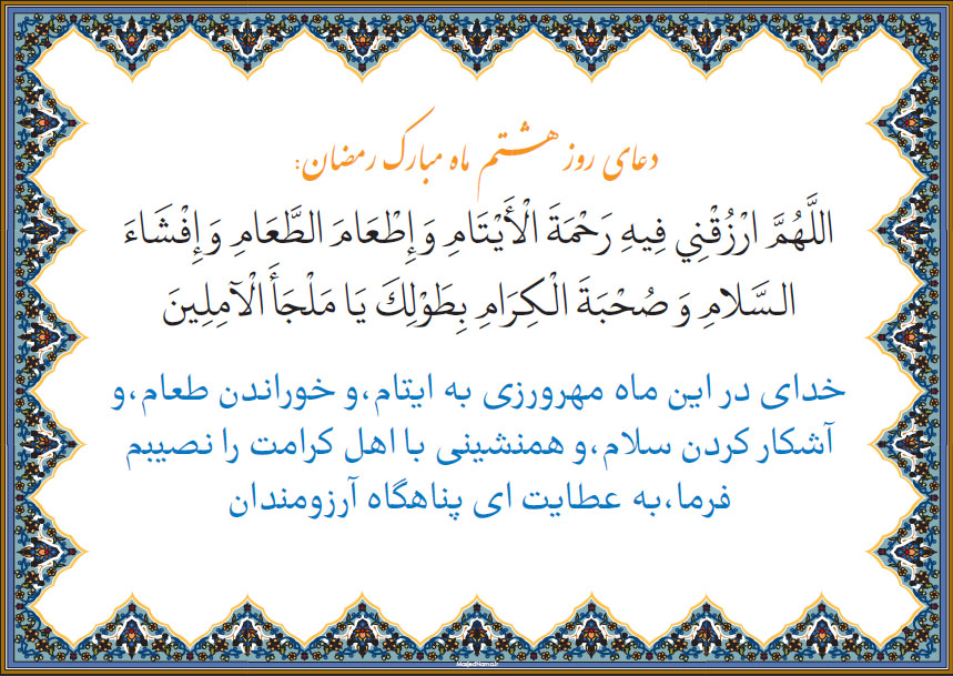 دعای روز هشتم ماه مبارک رمضان