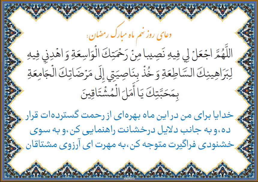 دعای روز نهم ماه مبارک رمضان