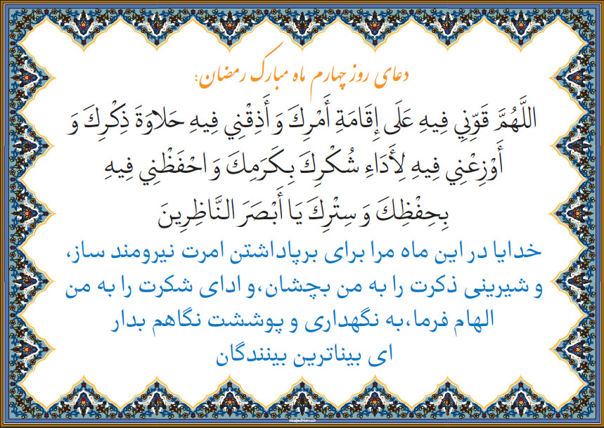 دعای روز چهارم ماه مبارک رمضان