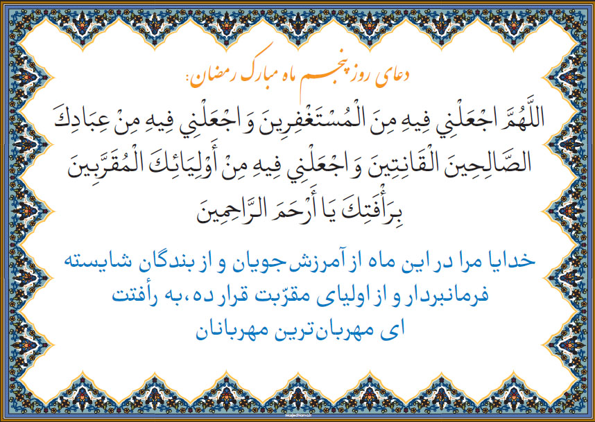 دعای روز پنجم ماه مبارک رمضان