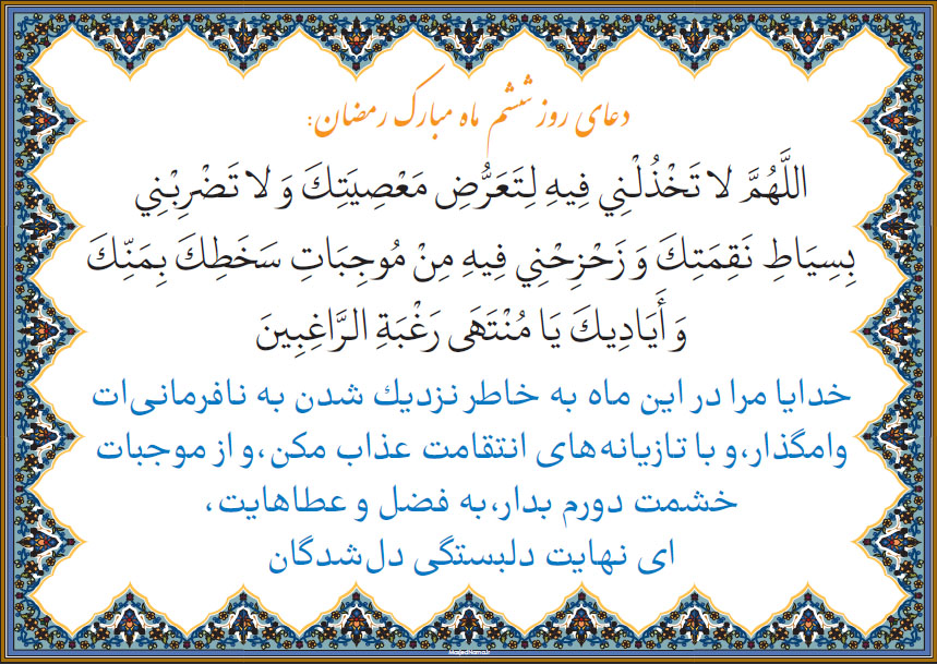 دعای روز ششم ماه مبارک رمضان