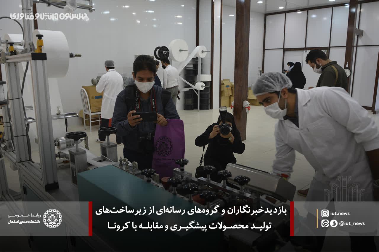 گزارش تصويري بازديد خبرنگاران و گروه هاي رسانه اي از زيرساخت هاي توليد محصولات پيشگيري و مقابله با كرونا در دانشگاه صنعتي اصفهان