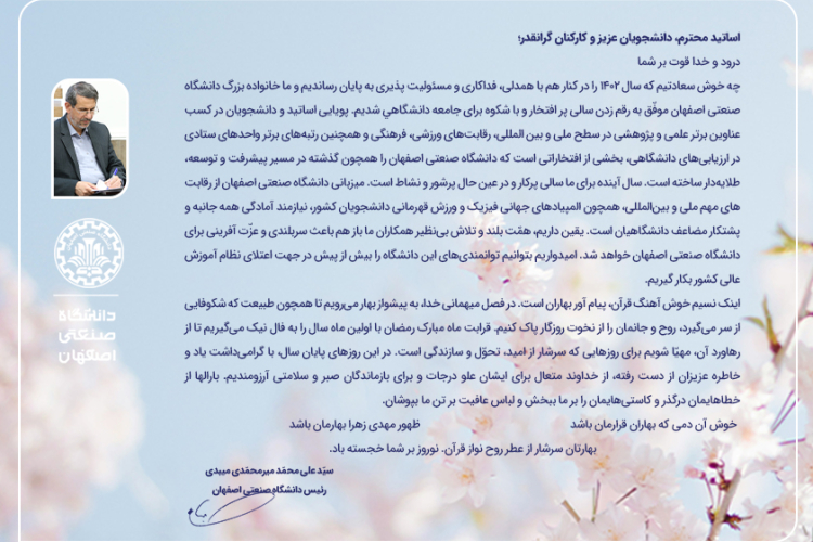 پیام تبریک رئیس دانشگاه به مناسبت فرارسیدن سال نو