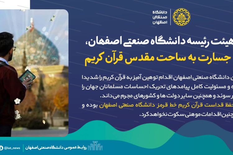 بیانیه هیئت رئیسه دانشگاه صنعتی اصفهان، در پی جسارت به ساحت مقدس قرآن کریم