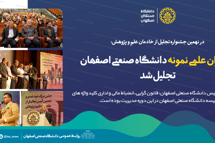 در نهمین جشنواره تجلیل از خادمان علم و پژوهش: از یاوران علمی نمونه دانشگاه صنعتی اصفهان تجلیل شد