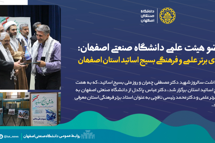 دو عضو هیئت علمی دانشگاه صنعتی اصفهان : چهره های برتر علمی و فرهنگی بسیج اساتید استان اصفهان