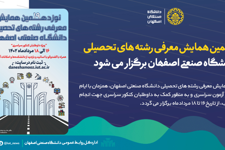 نوزدهمین همایش معرفی رشته های تحصیلی دانشگاه صنعتی اصفهان برگزار می شود