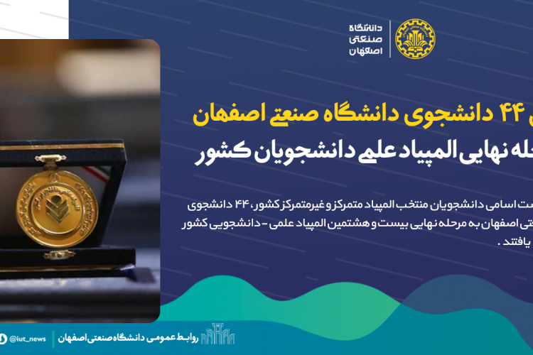 راه یابی 44 دانشجوی دانشگاه صنعتی اصفهان به مرحله نهایی المپیاد علمی دانشجویان کشور