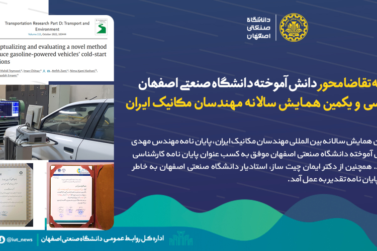 پایان نامه تقاضا محور دانش آموخته دانشگاه صنعتی اصفهان برگزیده سی و یکمین همایش سالانه مهندسان مکانیک ایران