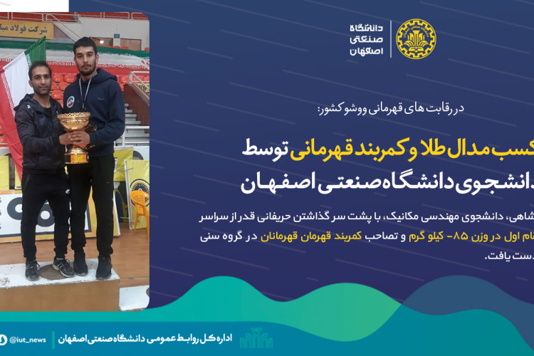 کسب مدال طلا و کمربند قهرمانی توسط دانشجوی دانشگاه صنعتی اصفهان