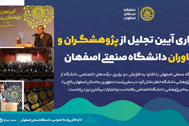 آیین تجلیل از پژوهشگران و فناوران دانشگاه صنعتی اصفهان برگزار شد