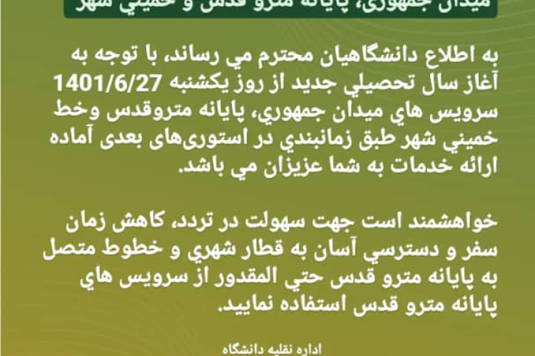اطلاعيه اعلام ايستگاه هاي سرويس جمهوري- مترو و خميني شهر