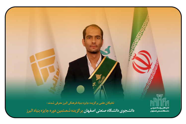 دانشجوی دانشگاه صنعتی اصفهان برگزیده شصتمین دوره جایزه بنیاد البرز