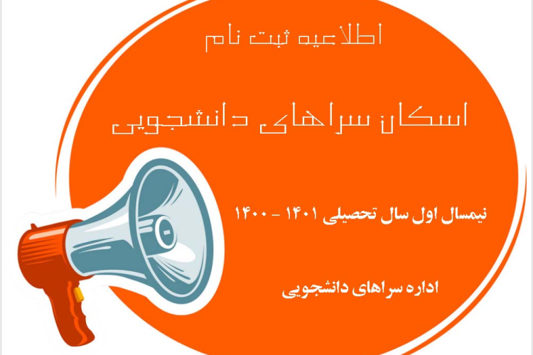 اطلاعیه ثبت نام اسکان سراهای دانشجويی در نیمسال اول سال تحصیلی 1401-1400