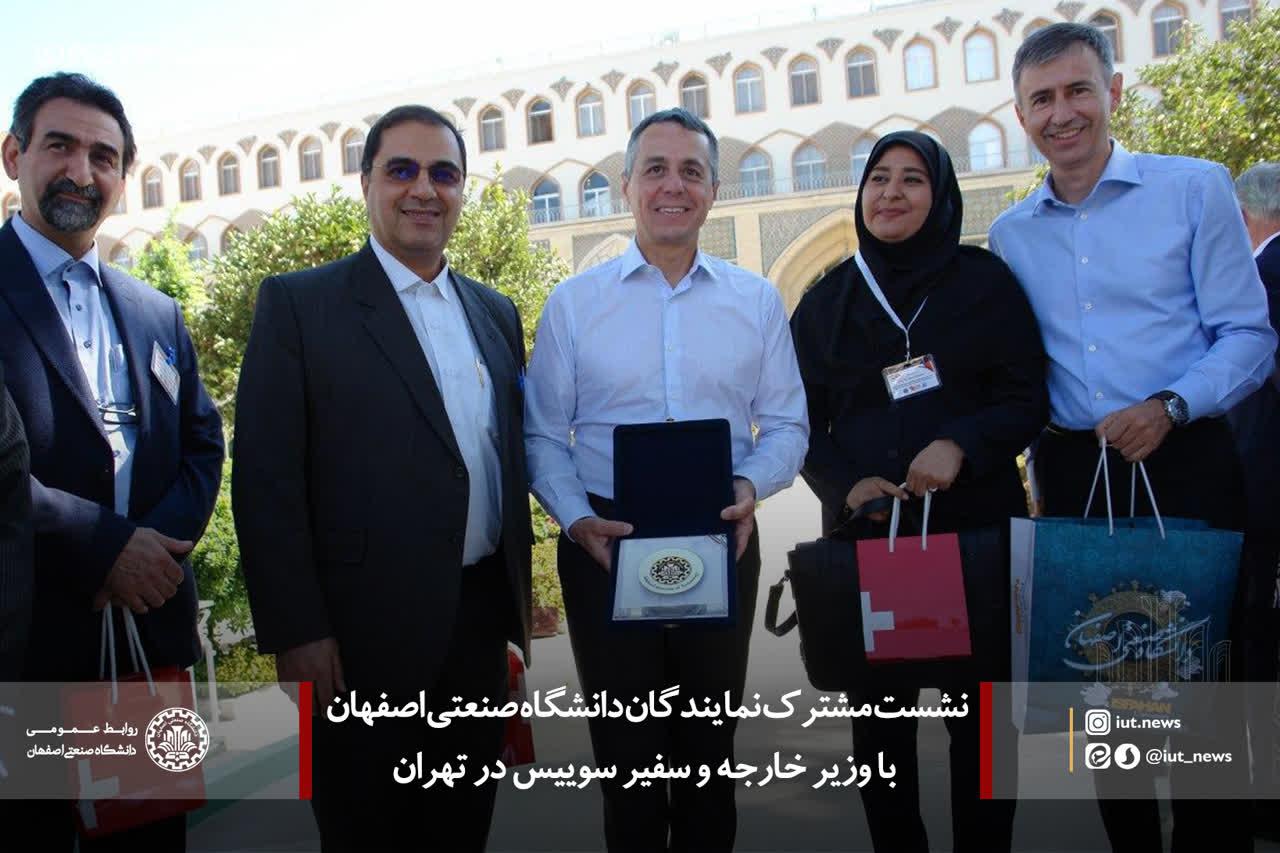در نشست مشترک نمایندگان دانشگاه صنعتی اصفهان با وزیر خارجه و سفیر سوییس در تهران، وزیر خارجه سوییس ضمن قدردانی از فعالیت های علمی بین المللی این دانشگاه به عنوان مرجع همکاری های علمی ایران و سوییس، بر استمرار و ارتقاء این همکاری ها تأکید کرد.