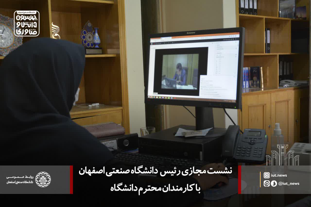 رئیس دانشگاه صنعتی اصفهان در ادامه دیدار با اقشار مختلف دانشگاهیان، امروز شنبه در گفتگوی مجازی با كارمندان دانشگاه، ضمن تقدیر از تلاشهای کارکنان دانشگاه در ایام کرونا، ضرورت تشکیل این جلسه را بهبود شرایط دانشگاه با بهرهمندی از نظرات کارکنان دانست.