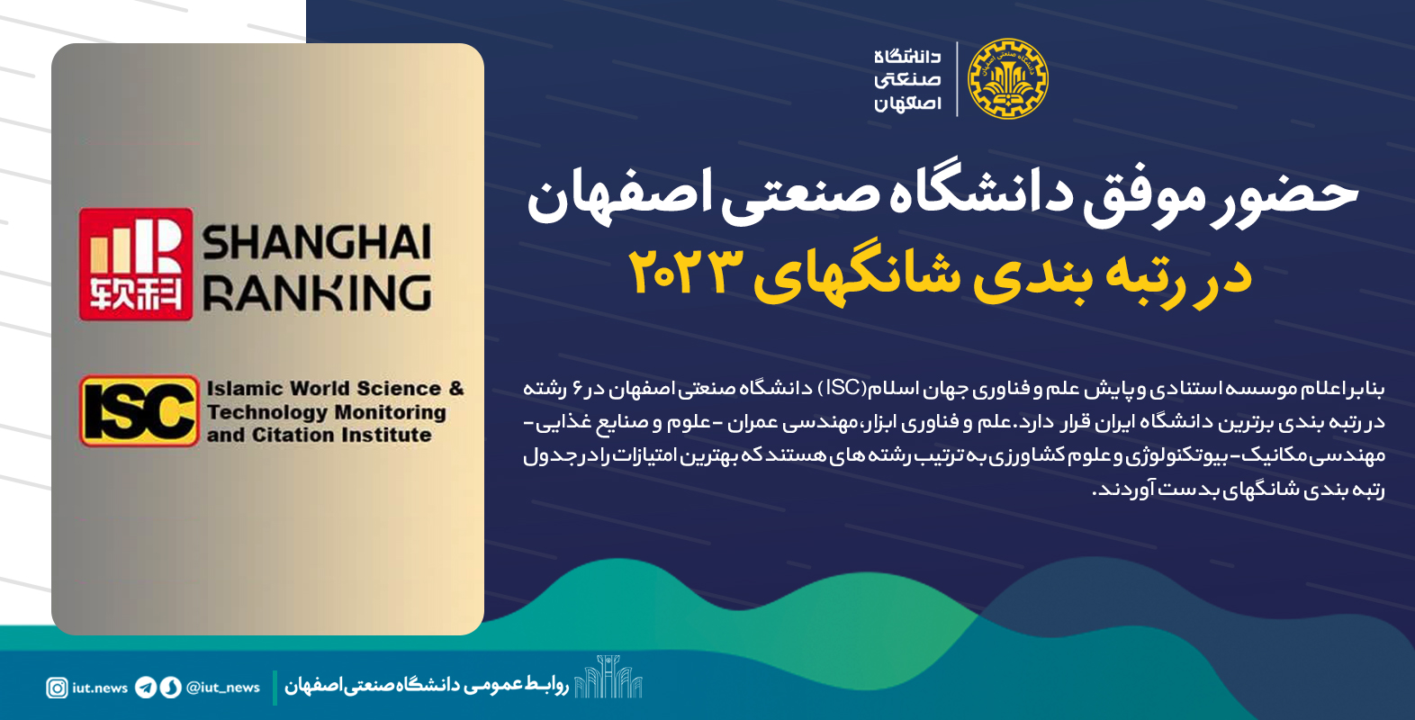 حضور موفق دانشگاه صنعتی اصفهان در رتبهبندی موضوعی شانگهای ۲۰۲۳