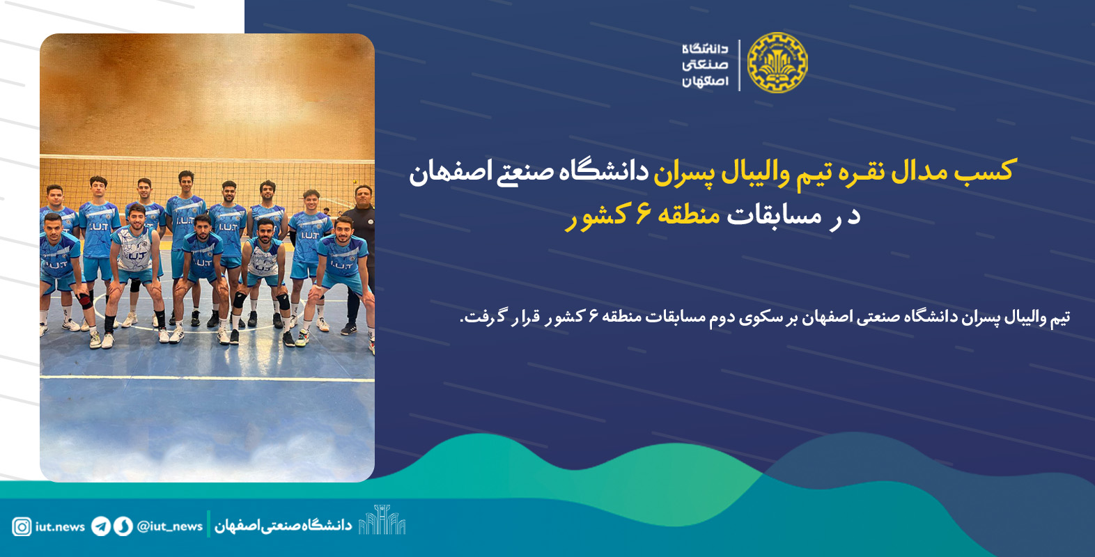 به گزارش روابط عمومی دانشگاه صنعتی اصفهان، تیم والیبال دانشگاه صنعتی اصفهان با هدایت مجید مباشری موفق به کسب عنوان نایب قهرمانی مسابقات منطقه ۶ کشور شد.