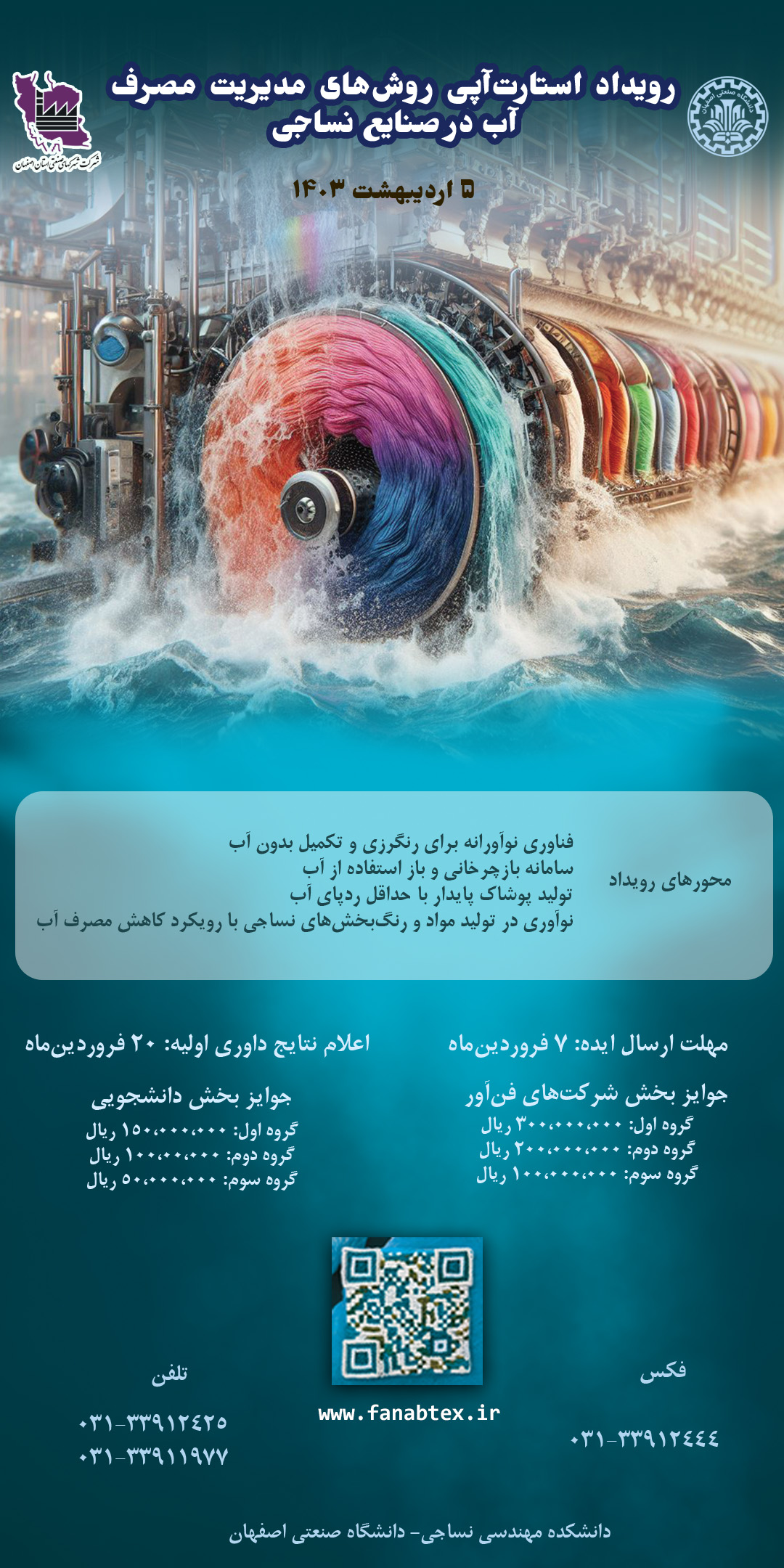رویداد فن‌آب با هدف حمایت از ایده‌های برتر بهینه‌سازی مصرف آب در صنعت نساجی در دانشگاه صنعتی اصفهان برگزار می‌شود.