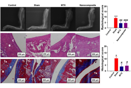 وی با اشاره به بررسی ویژگیهای ضد التهابی این نانوکامپوزیت در فاز برونتنی بر روی رده سلول های ماکروفاژی موش و نیز ارزیابی آن در شرایط درونتنی بر روی مدلهای رماتیسم این حیوان، بیان کرد: معاینات بالینی، میزان فاکتورهای التهابی در خون، عکسهای رادیولوژی، و رنگآمیزی بافت مفصل نشان دادند که نانوکامپوزیت تهیه شده کمترین عوارض جانبی را به دنبال داشته و میتواند گزینه مناسبی برای درمان رماتیسم باشد.