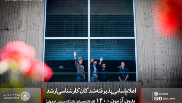 اعلام اسامى پذيرفتهشدگان كارشناسىارشد بدون آزمون ١٤٠٠(فارغالتحصیلان دانشگاه صنعتى اصفهان)