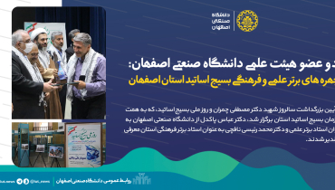 دو عضو هیئت علمی دانشگاه صنعتی اصفهان : چهره های برتر علمی و فرهنگی بسیج اساتید استان اصفهان