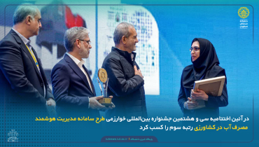 در آئین اختتامیه سی و هشتمین جشنواره بینالمللی خوارزمی طرح سامانه مدیریت هوشمند مصرف آب در کشاورزی رتبه سوم را کسب کرد