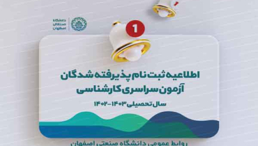 اطلاعیه ثبت نام پذيرفتهشدگان آزمون سراسری کارشناسی سال 1402 دانشگاه صنعتي اصفهان