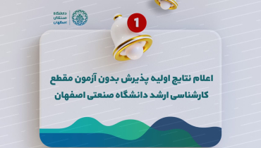 اطلاعیه نتایج اولیه پذیرش بدون آزمون مقطع کارشناسی ارشد دانشگاه صنعتی اصفهان سال تحصیلی ۱۴۰3-۱۴۰2