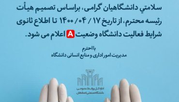 اعلام وضعیت A در دانشگاه صنعتی اصفهان با توجه به وضعیت قرمز بیماری کرونا در اصفهان