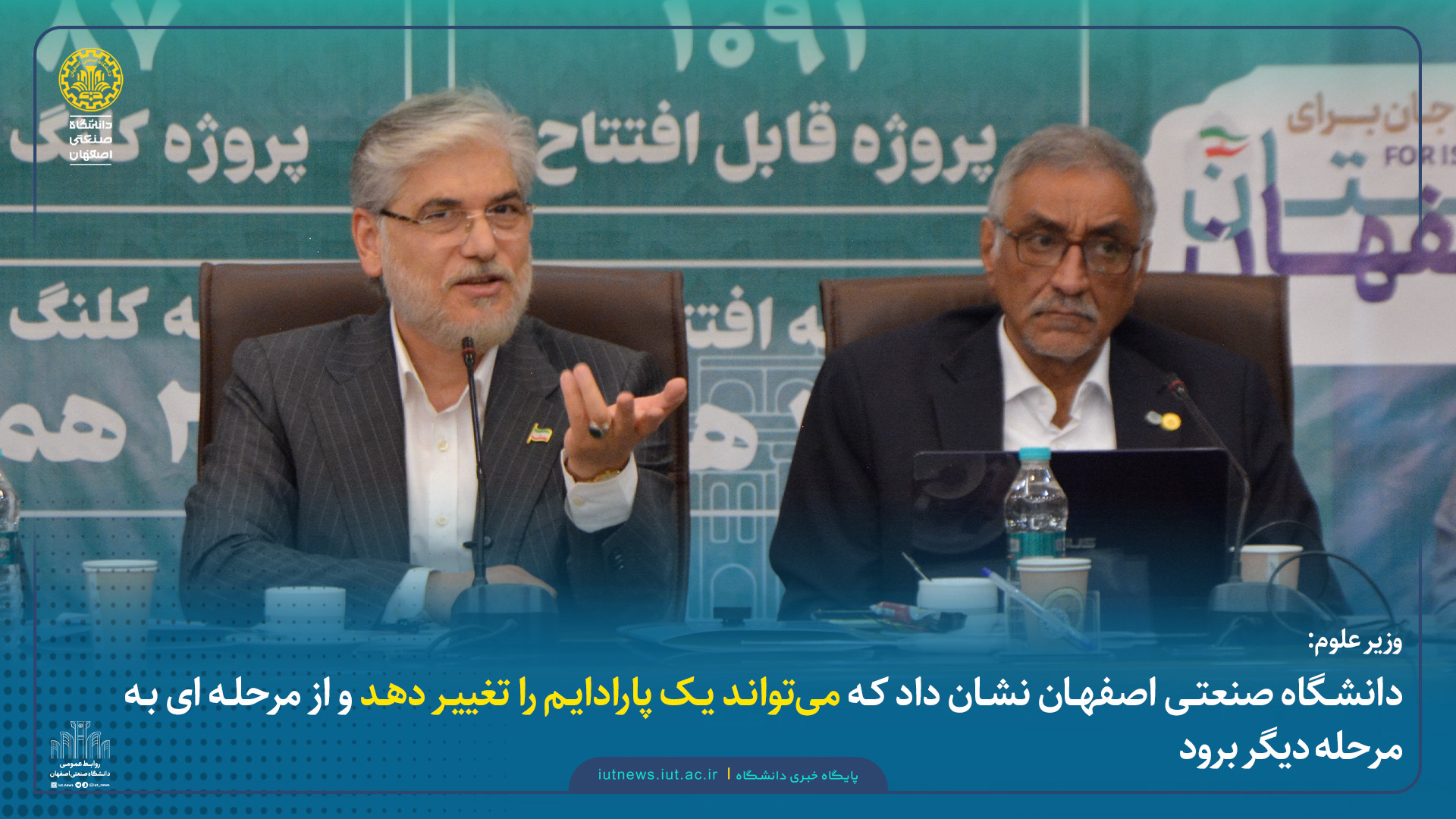 وزیر علوم: دانشگاه صنعتی اصفهان نشان داد که میتواند یک پارادایم را تغییر دهد و از مرحله ای به مرحله دیگر برود